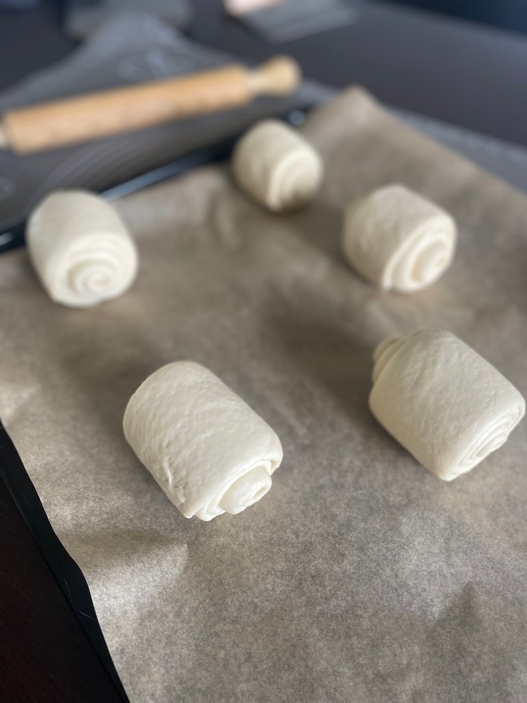 - Formare le mantovane, Appiattire ogni parte con un matterello formando una lunga striscia, arrotolare nel senso orizzontale, girare e allungare con il matterello a questo punto fare un rotolino per il lungo, stringiamo molto bene e formare un cilindro