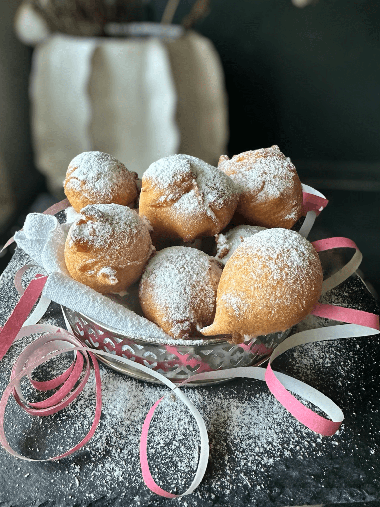- Con l’aiuto di una sac a poche, munita dì bocchetta, praticare un foro nelle frittelle e riempire con la crema