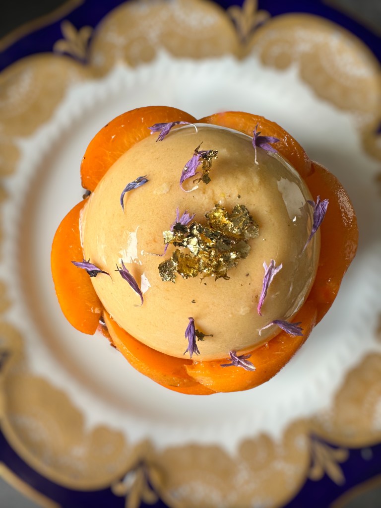 - Decorare con le albicocche, foglia oro, fiori eduli