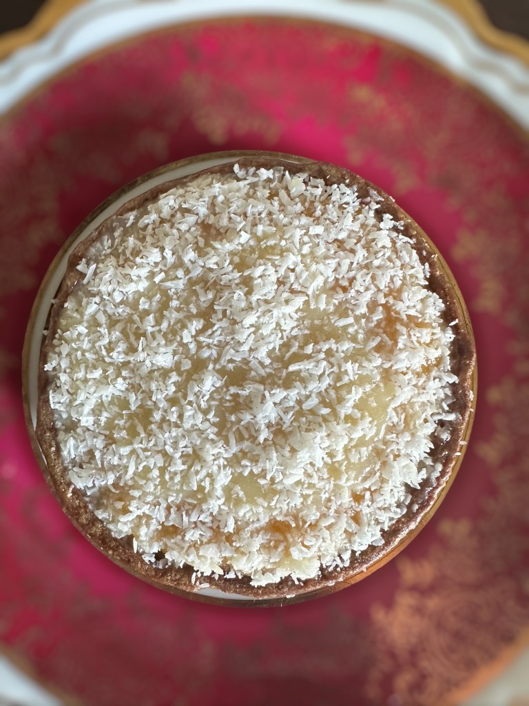 - Adagiare il biscuit e versare ancora ganache e scaglie di cocco