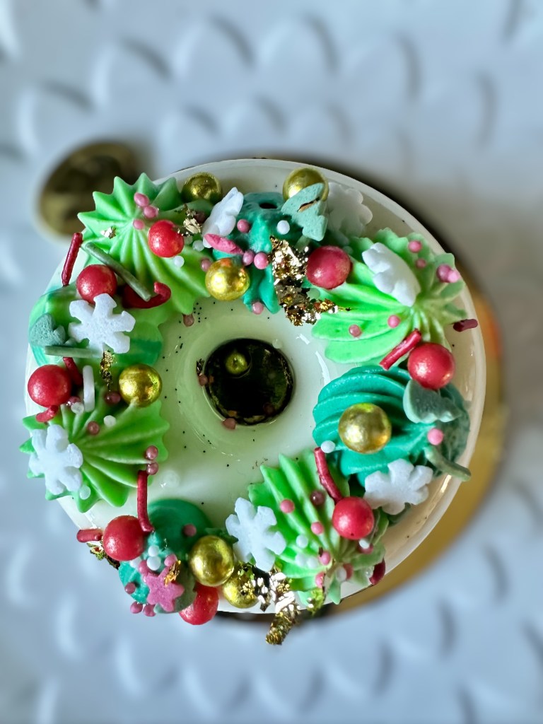 - Decorare con la sac a poche tutto intorno e decorare a piacere con zuccherini natalizi