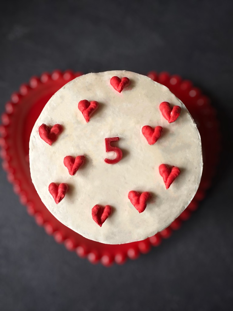 - Colorare un po di crema al burro con il colore rosso mettere in sac a poche e con bocchetta piccola e rotonda fare i cuoricini