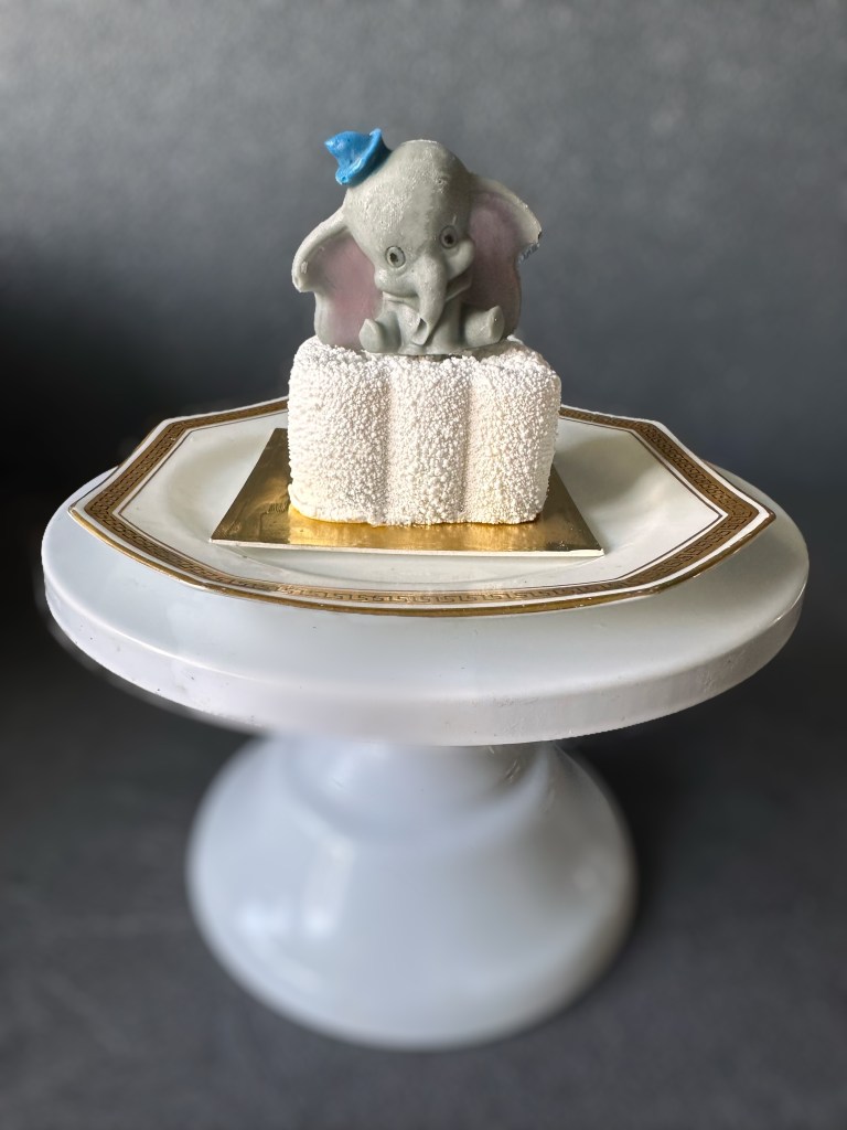 - Adagiare l’ lelefante di cioccolato sulla tortina (vi consiglio di mettere un bastoncino di legno o uno stuzzicadenti quando lo riempite con il cioccolato, sarà più stabile sulla tortina)