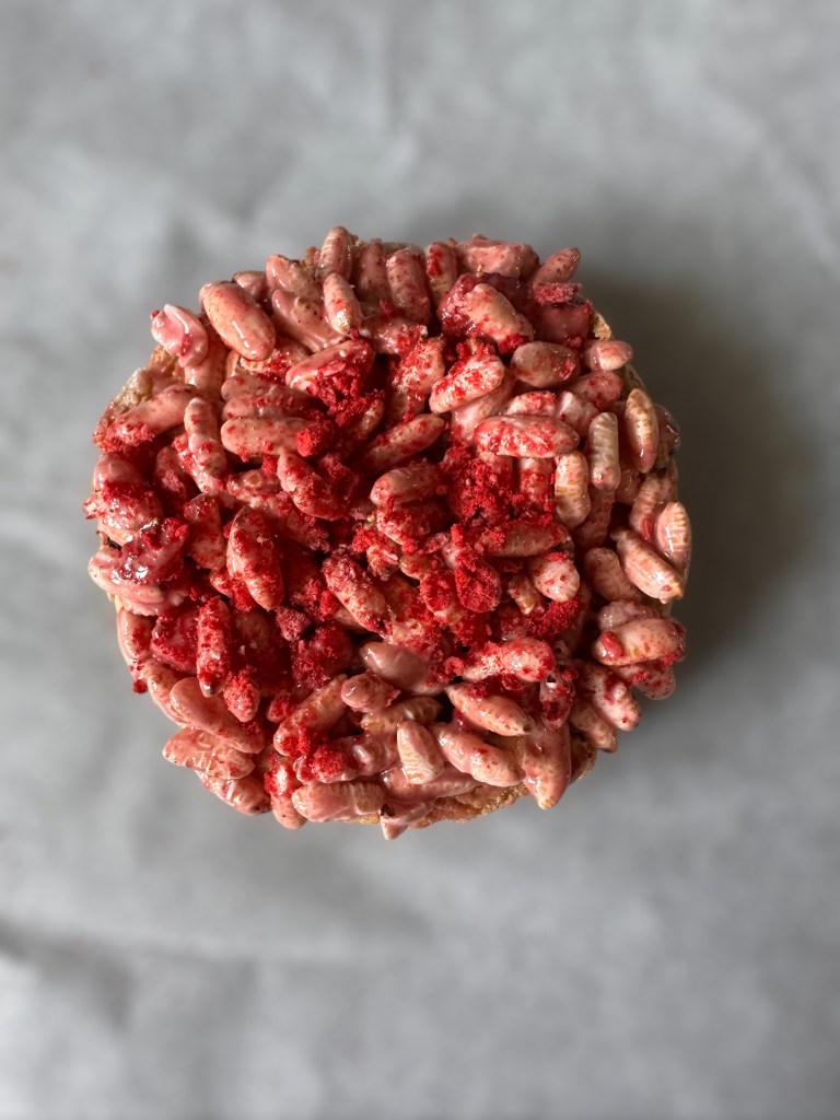 - stendere uno strato sul cerchio di biscuit aggiungere qualche lampone disidratato