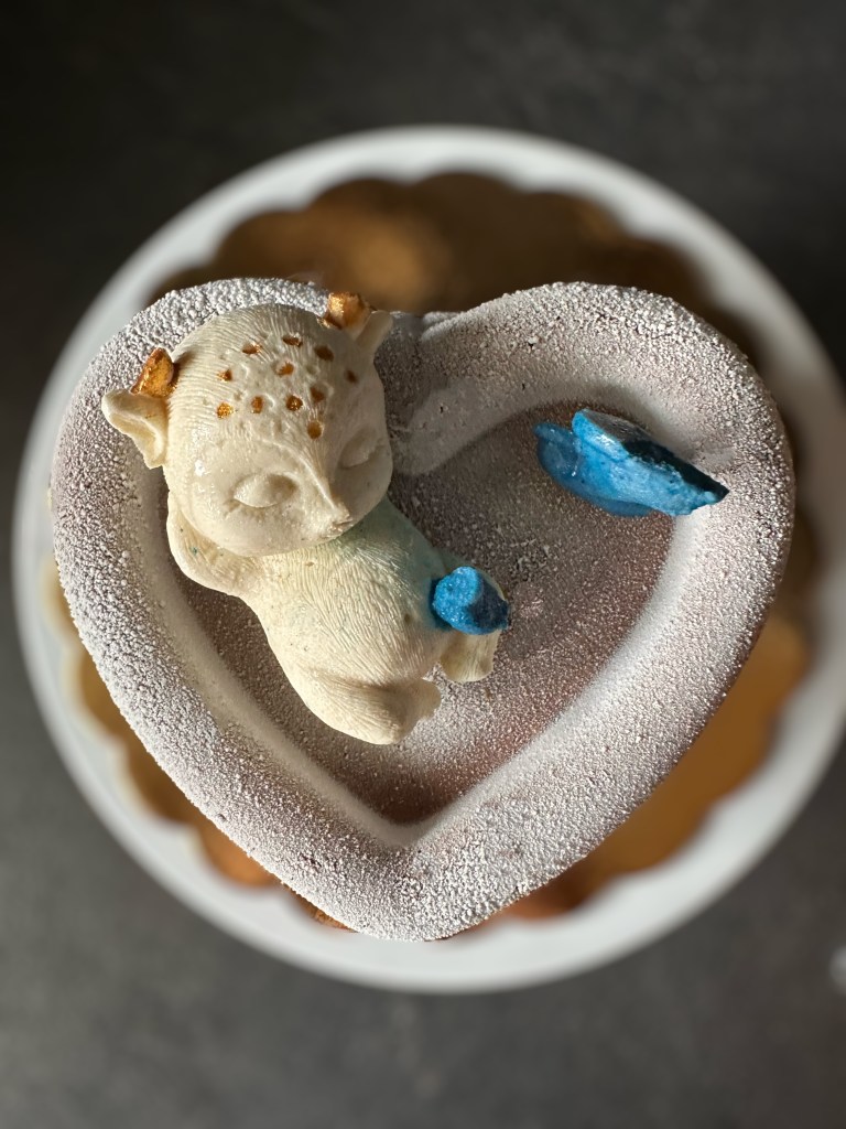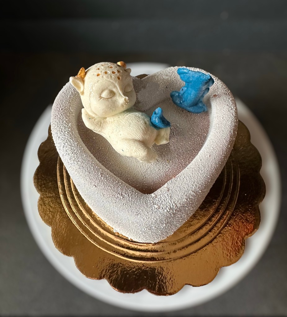 - versare un parte nello stampo . Adagiare l’inserto mettere ancora cremoso chiudere con il biscuit con la parte croccante verso il basso