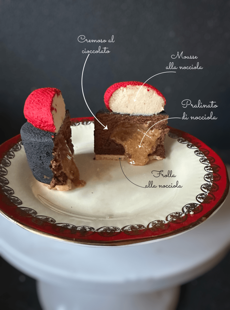 - Versare un pò di cremoso nello stampo mettere l’inserto, versare ancora cremoso e chiudere con il biscuit