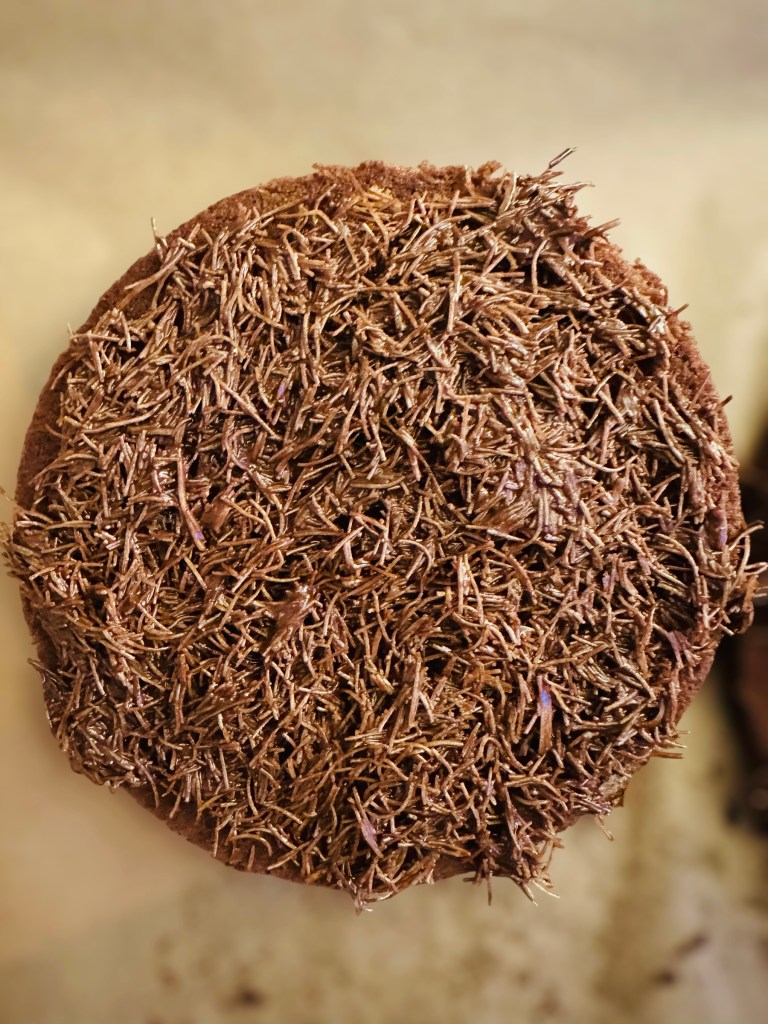 - Prendere lo stampo da 24 sformare la torta posizionarla su una griglia spruzzare lo spray effetto velluto rosa posizionatela sulla base da torta fissandola con un po di cioccolato bianco fuso