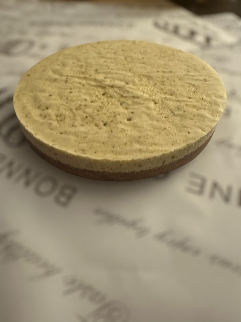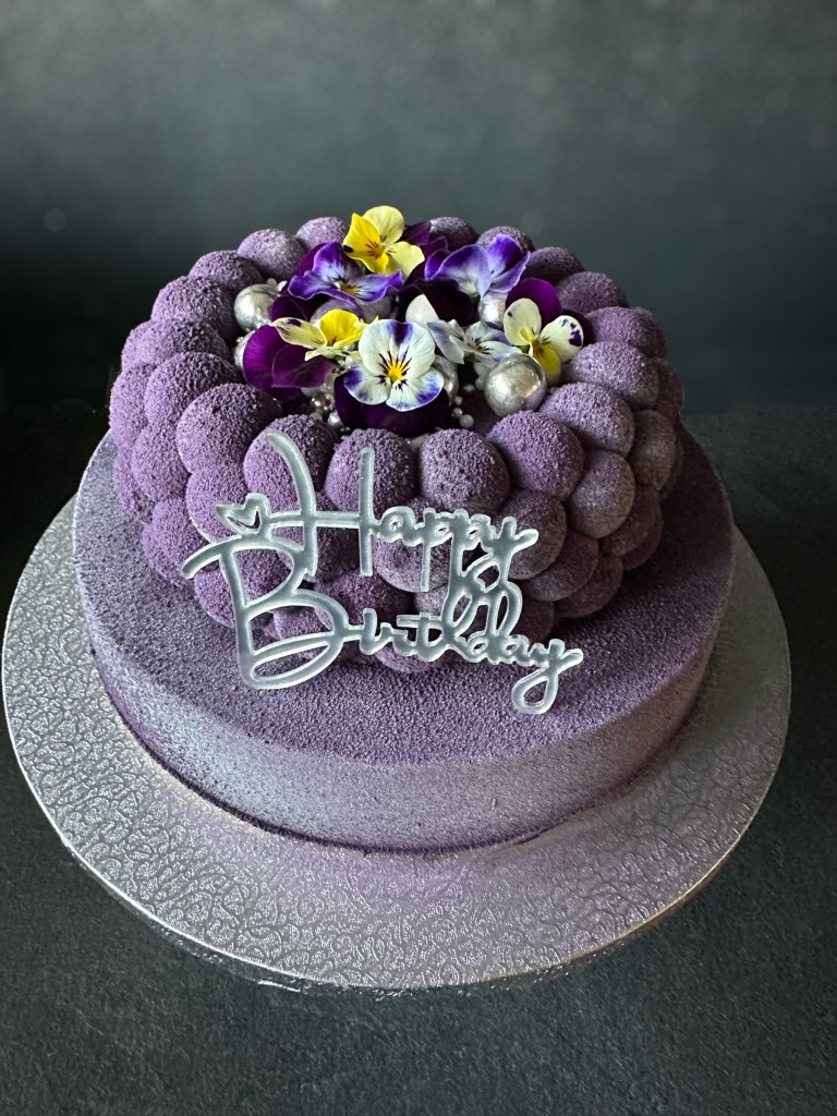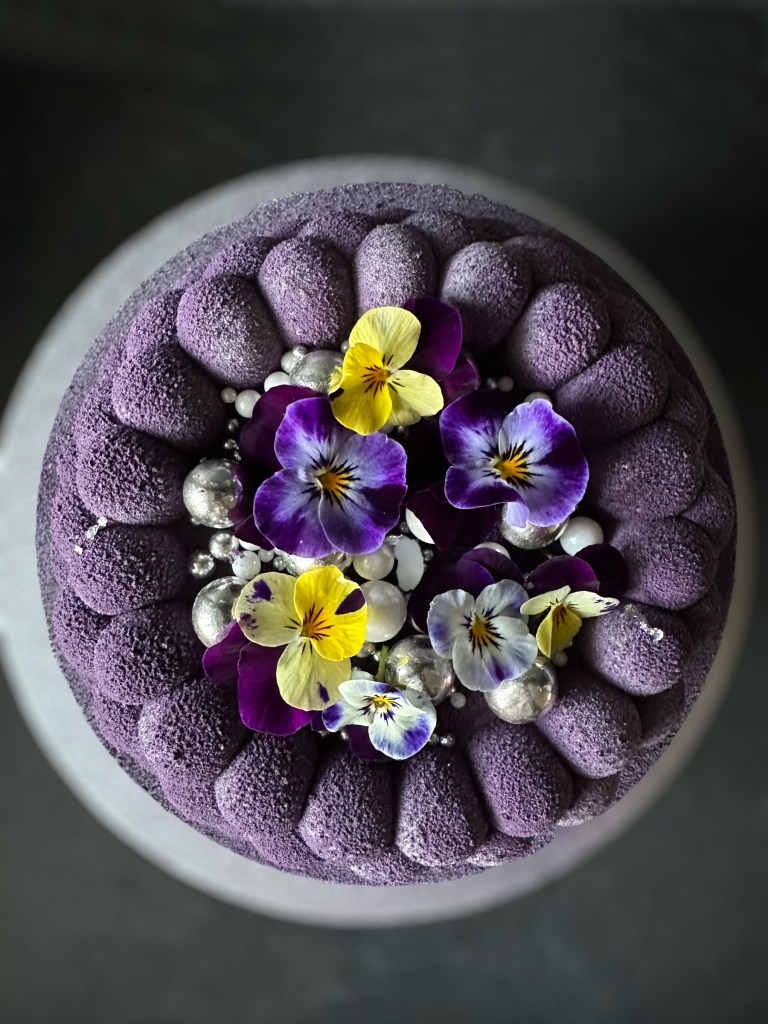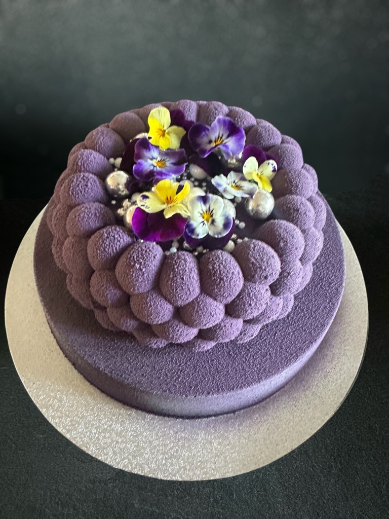 Questa torta è formata da una base spugnosa di biscuit al cacao da una base crocconte di Croustillant di pasta kataif , cioccolato fondente, pralinato di pistacchio , da un inserto formato da una mousse al cioccolato, una mousse al pistacchio, da una parte esterna di cremoso alla vaniglia e da una finitura spray chablonage effetto velluto viola