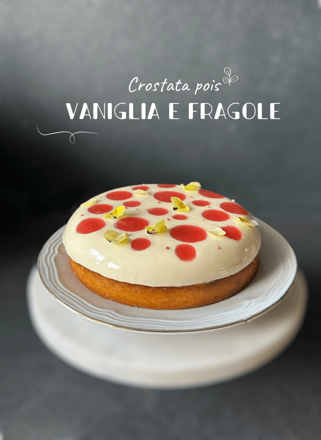 - Versarne nella crostata con una sac a poche.e aggiungere qualche fragola e qualche mandorla