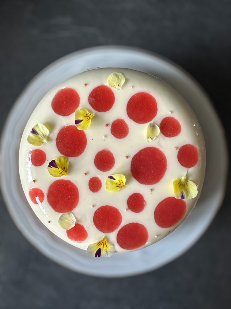 - Versare la mousse alla vaniglia nello stampo a cupola del kit, appoggiando lo stampo in silicone su una teglia.